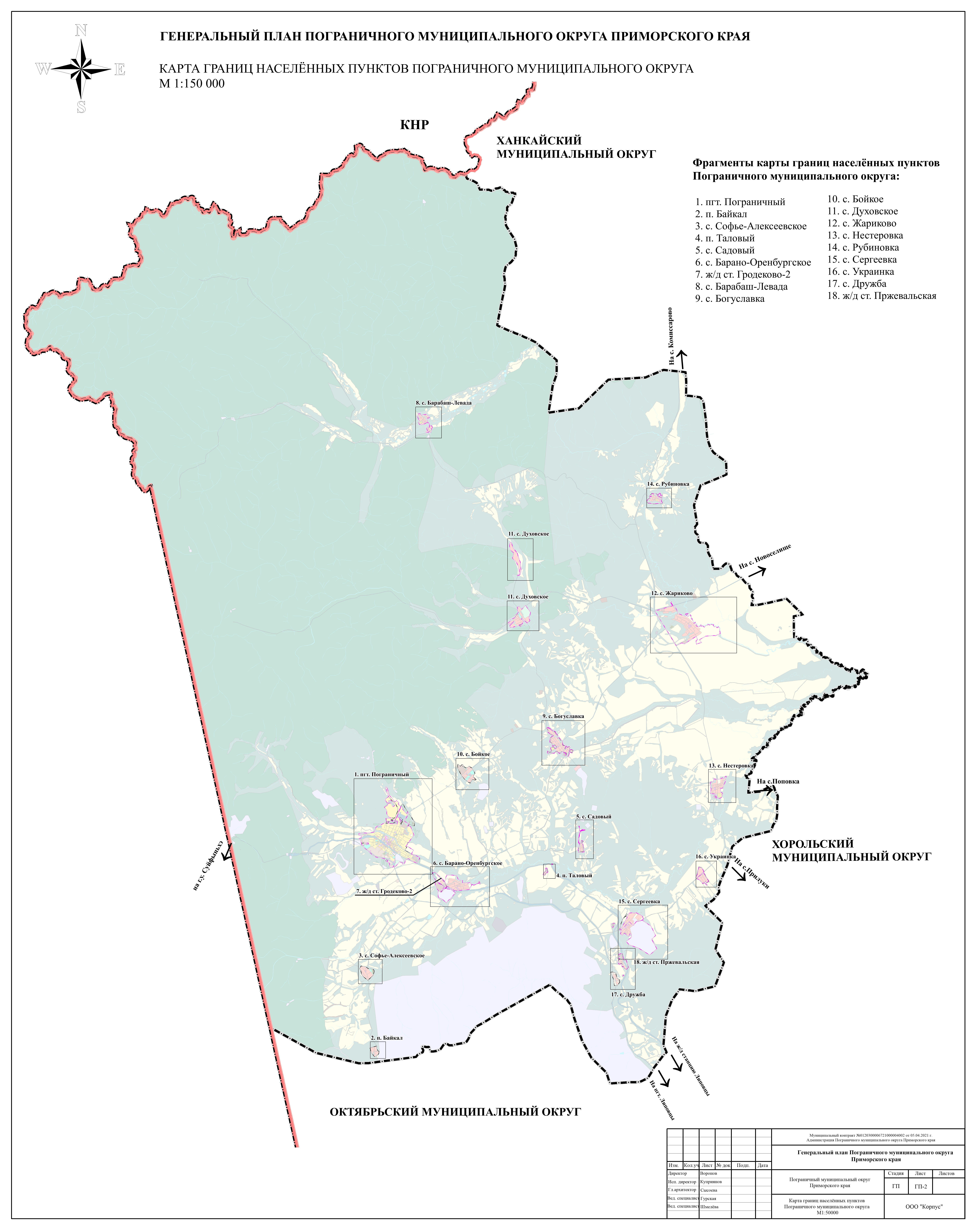 КАРТА ГРАНИЦ НАСЕЛЁННЫХ ПУНКТОВ ПОГРАНИЧНОГО МУНИЦИПАЛЬНОГО ОКРУГА 1:150 000