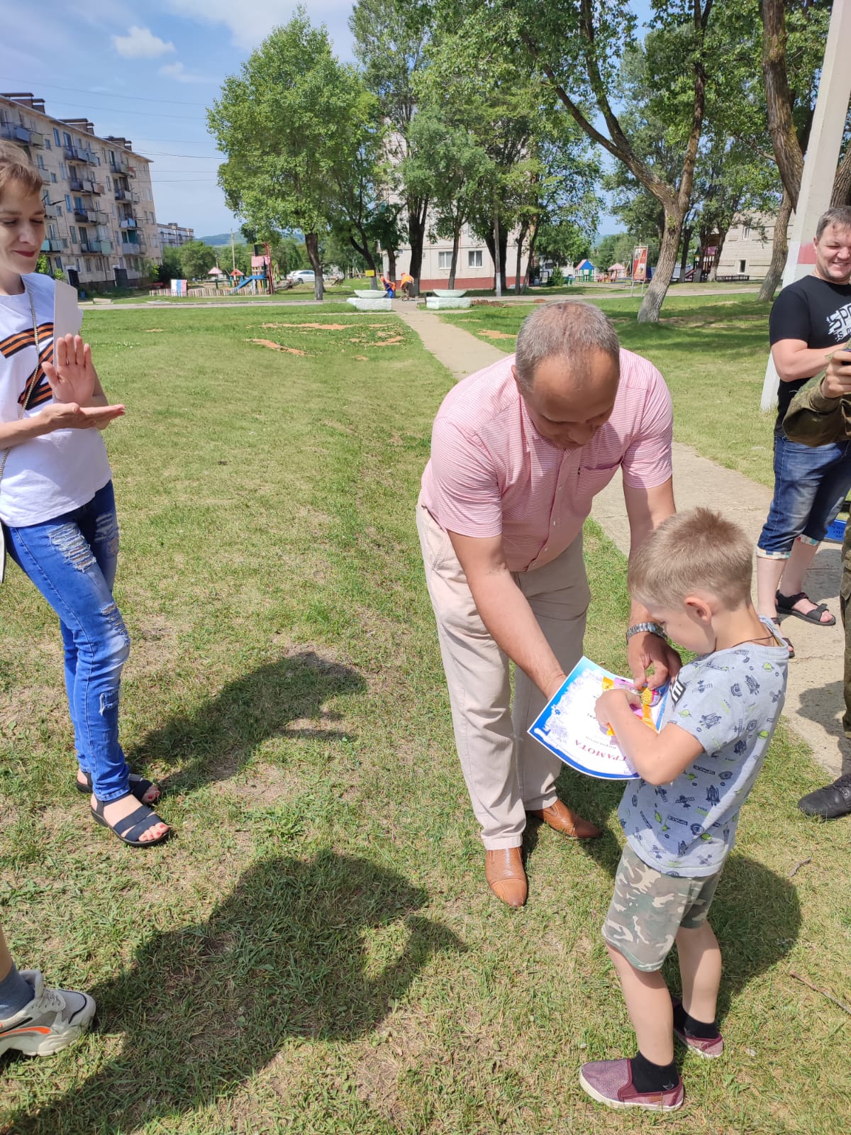 Дети принесли нарисованные дома портреты своих пап, некоторые рисовали их прямо на месте. Из многочисленных рисунков была составлена целая галерея. Для участников мероприятия прошли соревнования и показаны номера художественной самодеятельности. Также многие воспользовались устроенной на площадке фотозоной. Активное участие в мороприятии принял депутат Думы Пограничного муниципального округа Вячеслав Волков. Он стал членом жюри конкурса рисунков "Мой папа", вручил подарки за лучшие работы, а также подарил ребятне коробку мороженого.