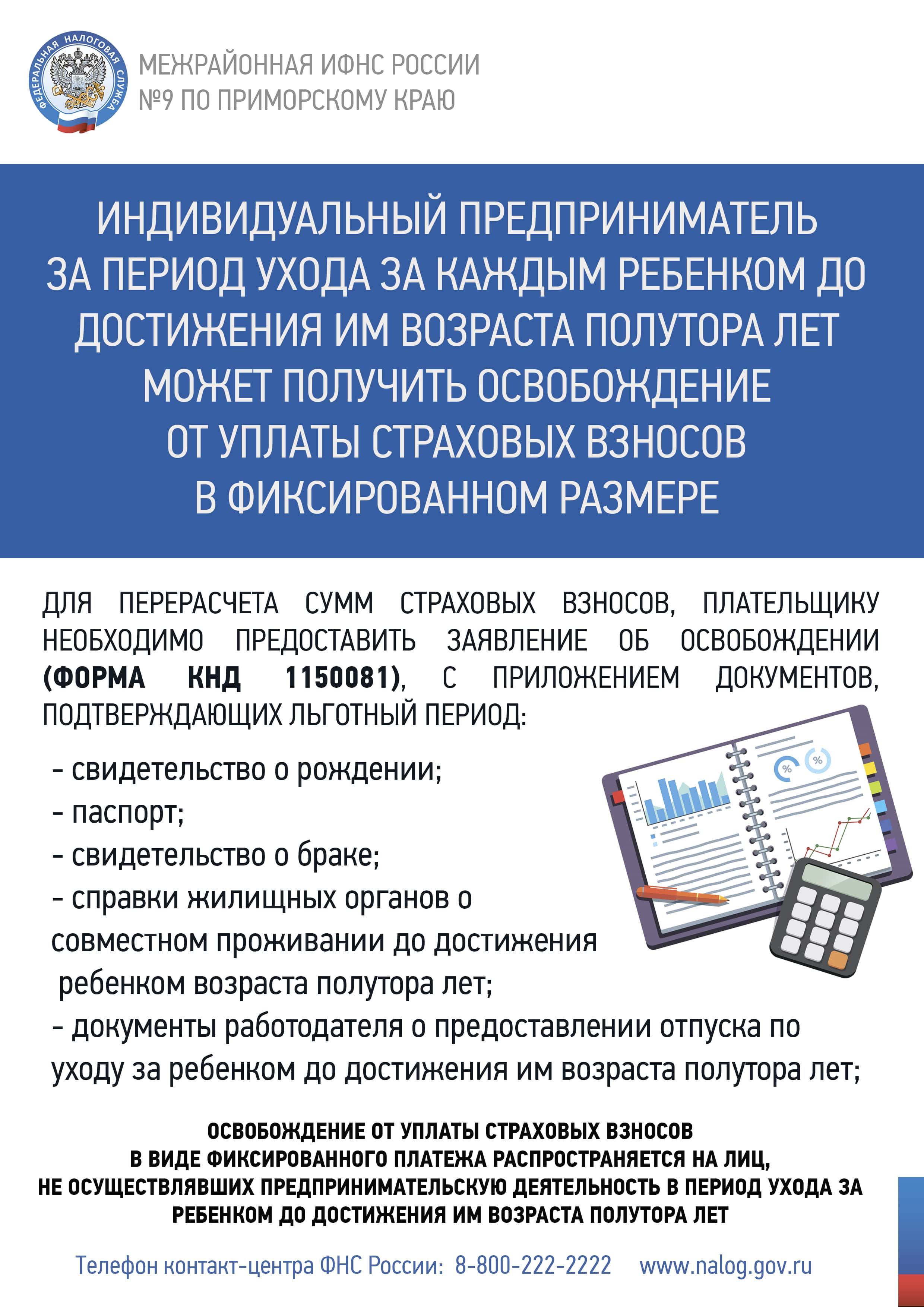 ИП, имеющий детей в возрасте до 1.5 лет, освобождается от уплаты СВ
