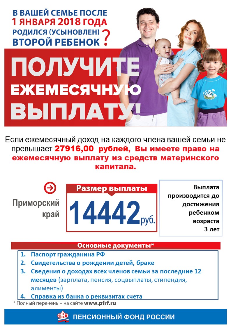 В вашей семье после 1 января 2018 года родился (усыновлён) второй ребёнок? Получите ежемесячную выплату!